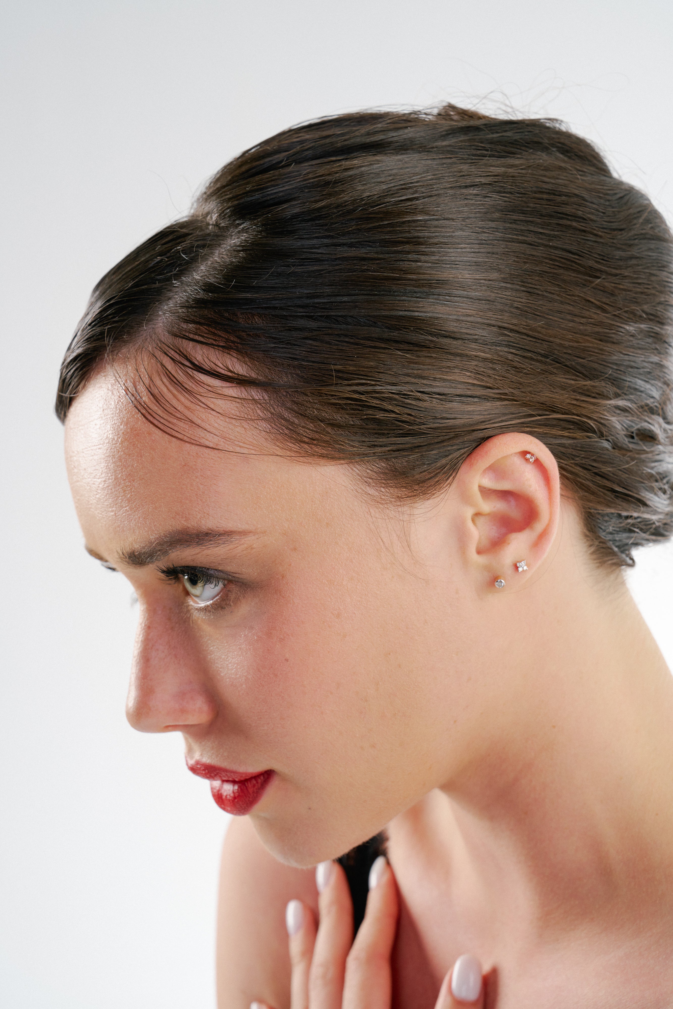 Each earring features a floral-inspired design, crafted with precision-set diamonds that catch the light beautifully. Whether worn alone for a subtle sparkle or paired with other pieces, they add a touch of grace to any look.